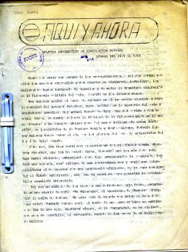 Boletín "Aquí y Ahora". S/E. Informativo de circulación privada, da cuenta de la situación política del país y los partidos políticos.