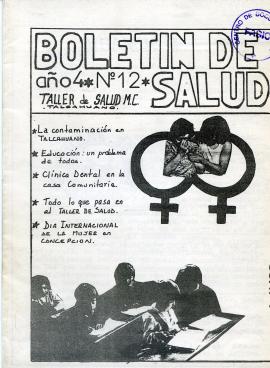 Boletín Nº 12 “De Salud”. Editado por Taller de salud Mediccamino Talcahuano, integrado a la Red de Prensa Nacional Popular. Informa de aspectos relacionados con la salud al interior de las poblaciones.