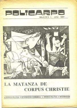 Revista Nº 4 “Policarpo”. Editado por la Vicaria de la Solidaridad. Entrevista a Carmen Gloria Quintana, situación economía e ingresos de los trabajadores, registros electorales, la masacre de Corpus Christie.